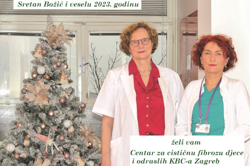 Hrvatska udruga oboljelih od cistične fibroze zajedno sa Centrom za cističnu fibrozu djece i odraslih KBC-a Zagreb želi vam sretan Božić i sretnu Novu 2023. godinu!